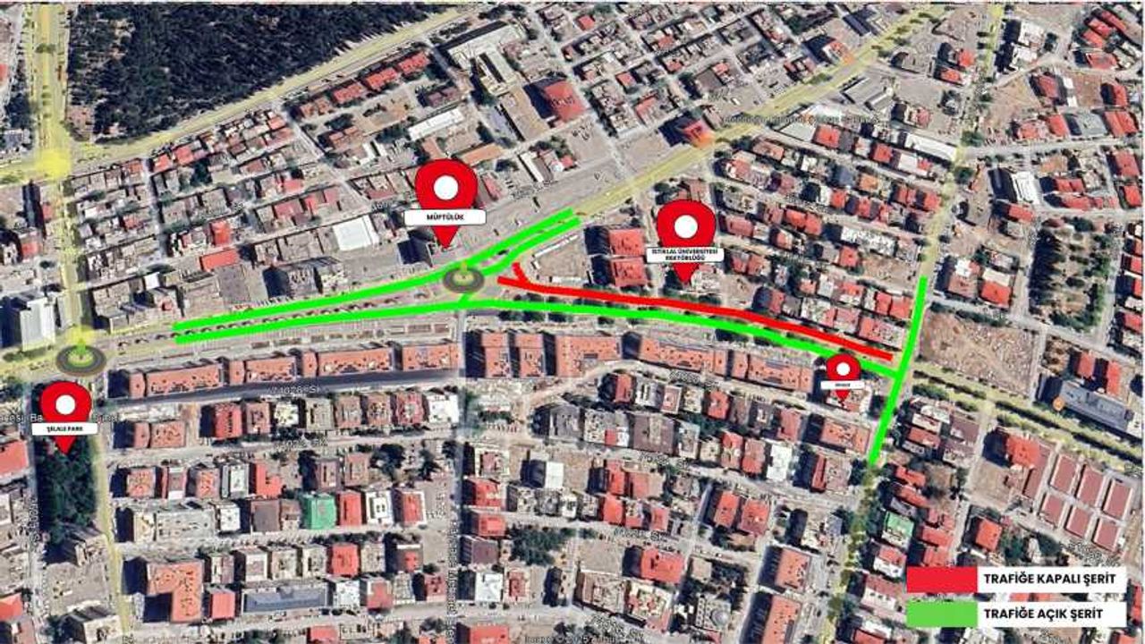 Kahramanmaraş Büyükşehir Belediyesi, gerçekleştirilecek altyapı çalışmaları dolayısıyla Cumhuriyet Bulvarı’nın bir bölümünde geçici trafik düzenlemesine gidileceği duyurdu. Yapılan açıklamaya göre, Cumhuriyet Bulvarı’nın Trabzon Bulvarı ve Cahit Zarifoğlu Caddesi ile kesişim noktasında bulunan ve Kahramanmaraş Müftülüğü’ne çıkan istikameti 23 Aralık 2025 ile 3 Ocak 2026 tarihleri arasında 11 gün süreyle araç trafiğine kapalı olacak. Söz konusu süreçte bölgede altyapı yenileme ve iyileştirme çalışmaları gerçekleştirilecek. Trafik akışının sağlıklı bir şekilde sürdürülebilmesi için uyarı levhaları, trafik işaretleri ve yönlendirmelere titizlikle uyulması gerektiği belirtildi. Ayrıca, çalışma yapılan güzergâhı kullanacak sürücülerin yoğunluk yaşamamaları adına mümkün olduğunca alternatif yolları tercih etmeleri istendi.