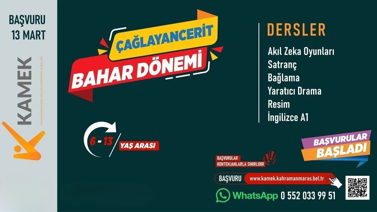 Elbistan, Çağlayancerit ve Ekinözü’nde ücretsiz olarak gerçekleştirilecek eğitim programlarına katılmak isteyen vatandaşlar başvurularını çevrimiçi olarak yapabiliyor. KAMEK kurslarına kayıt yaptırmak isteyenler, https://kamek.kahramanmaras.bel.tr/ internet adresi üzerinden başvuru formuna ulaşarak işlemlerini kolaylıkla tamamlayabiliyor. Kurslarla ilgili detaylı bilgi almak isteyen vatandaşların ise 0552 033 99 51 numaralı WhatsApp danışma hattı üzerinden iletişime geçebileceği belirtildi.