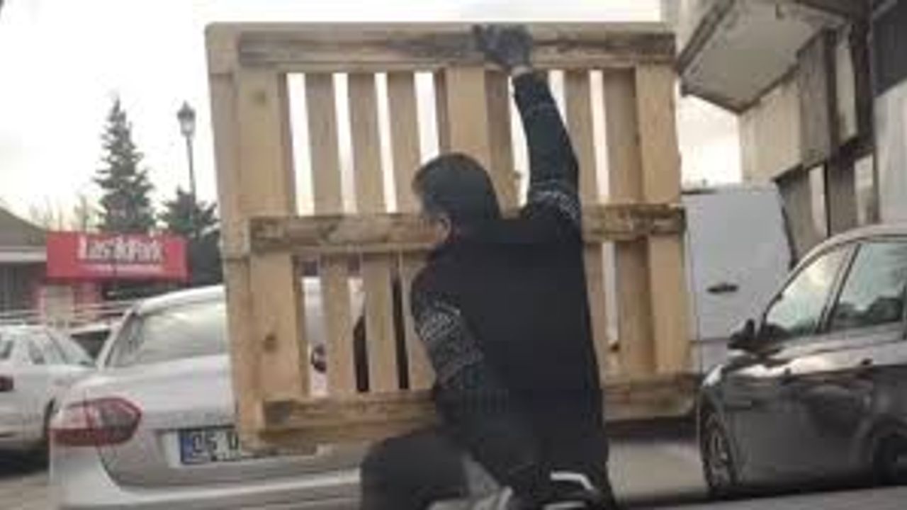 Olay, Gaziantep’te trafiğin yoğun olduğu bir caddede meydana geldi. İddiaya göre, plakası öğrenilemeyen motosikletin arka kısmında oturan kişi, kucağına aldığı paletle hiçbir güvenlik önlemi almadan yolculuk etmeye başladı.