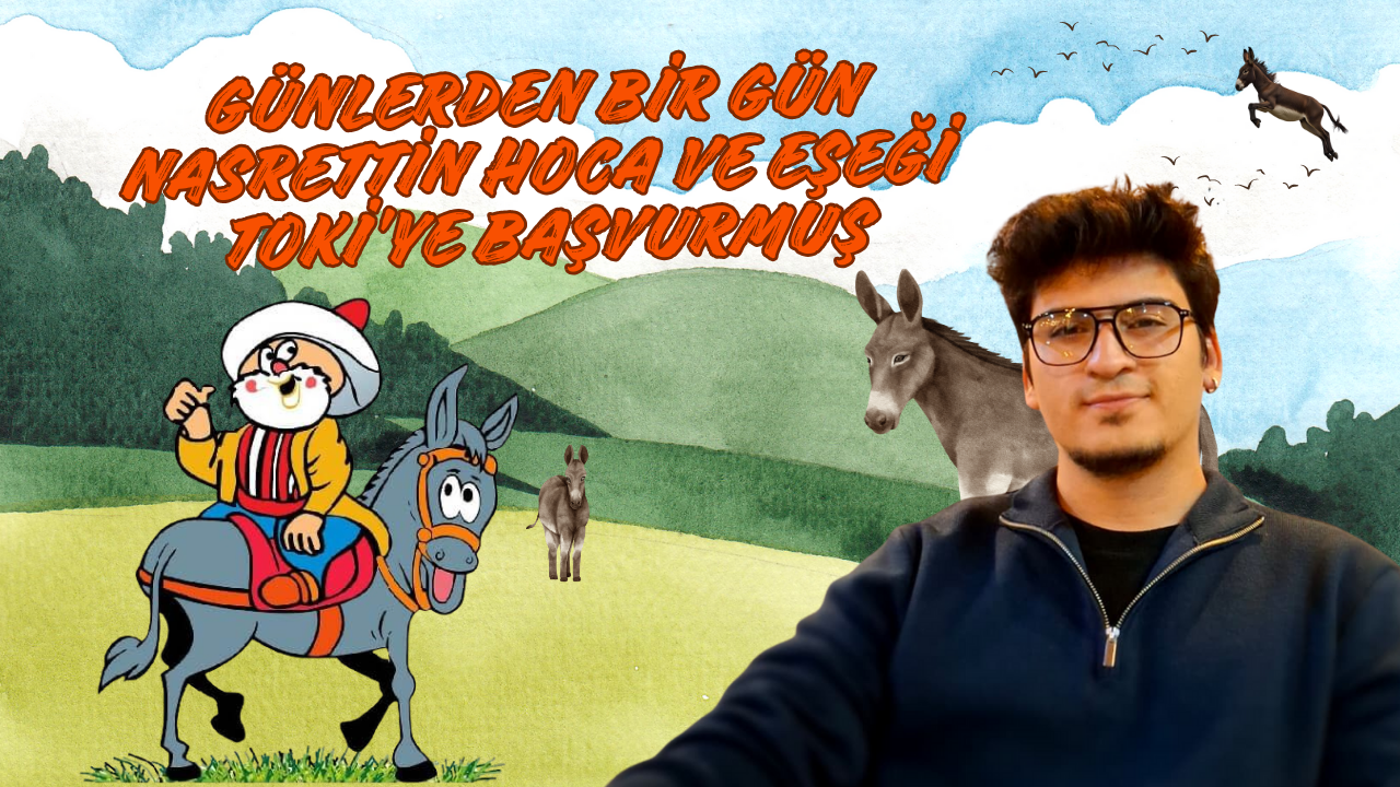 Günlerden Bir Gün Nasrettin Hoca ve Eşeği TOKİ’ye Başvurmuş ama başvurular sonuçlandığında Hoca bodrum kattan köhne bir daireyi, eşeğinin ise en üst kattan manzaralı daireyi kazandığını öğrenince morali bozulmuş.
