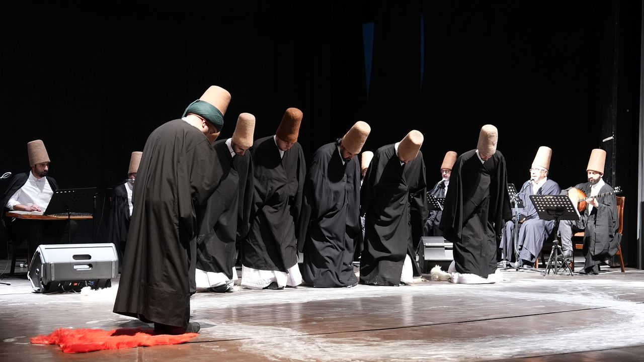 Salonun dolduğu gecede, katılımcılar asırlardır süregelen Mevlevi geleneğinin zarif ve derin anlam yüklü ritüellerine tanıklık etti. Program, Türk Tasavvuf Musikisi’nin ruhu dinlendiren eserleriyle başladı. İlahi ve naatların yankılandığı salonda, dinleyiciler manevi bir yolculuğa çıkarıldı. Tasavvuf musikisinin derin ve huzur veren tınıları, Hz. Mevlâna’nın sevgi, hoşgörü ve insan merkezli düşünce dünyasını katılımcılara bir kez daha hatırlattı. Gecenin en anlamlı anlarından biri ise sema töreni oldu.
