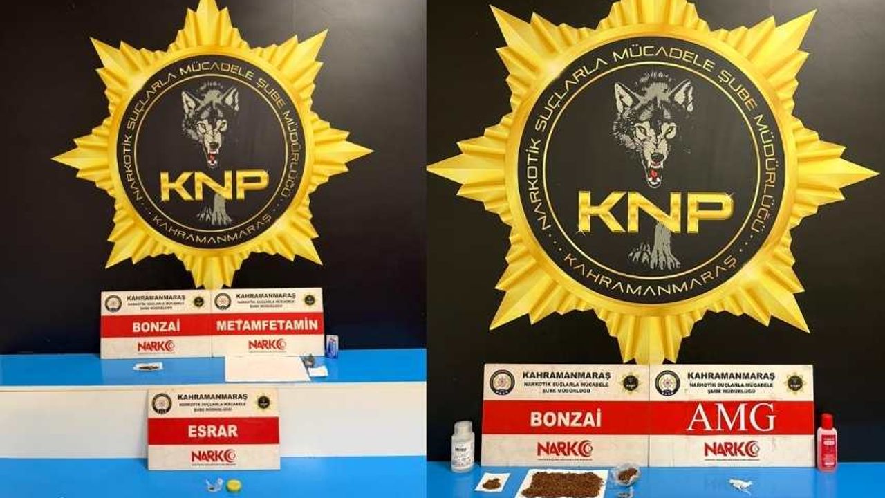 Kahramanmaraş Emniyet Müdürlüğü Narkotik Suçlarla Mücadele Şube Müdürlüğü ekiplerince yürütülen çalışmalar kapsamında, 15 Şubat Pazar günü gerçekleştirilen operasyonda 9,01 gram metamfetamin, 2,46 gram sentetik kannabinoid (bonzai) ve 0,34 gram esrar ele geçirildi.