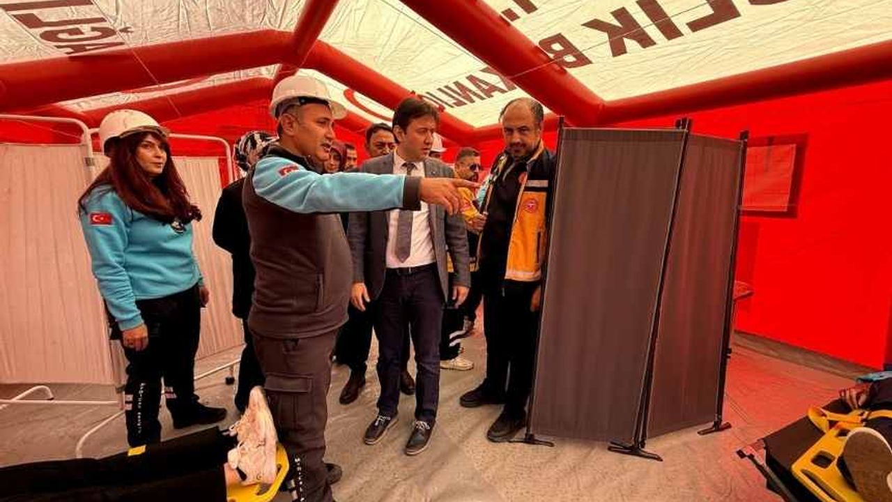 İl Sağlık Müdürlüğü koordinasyonunda gerçekleştirilen tatbikatta, senaryo gereği 6,4 büyüklüğünde meydana gelen depremin ardından hızla harekete geçen Afet ve Acil Durum Yönetimi Başkanlığı (AFAD) ve UMKE ekipleri enkaz alanlarına ulaştı.