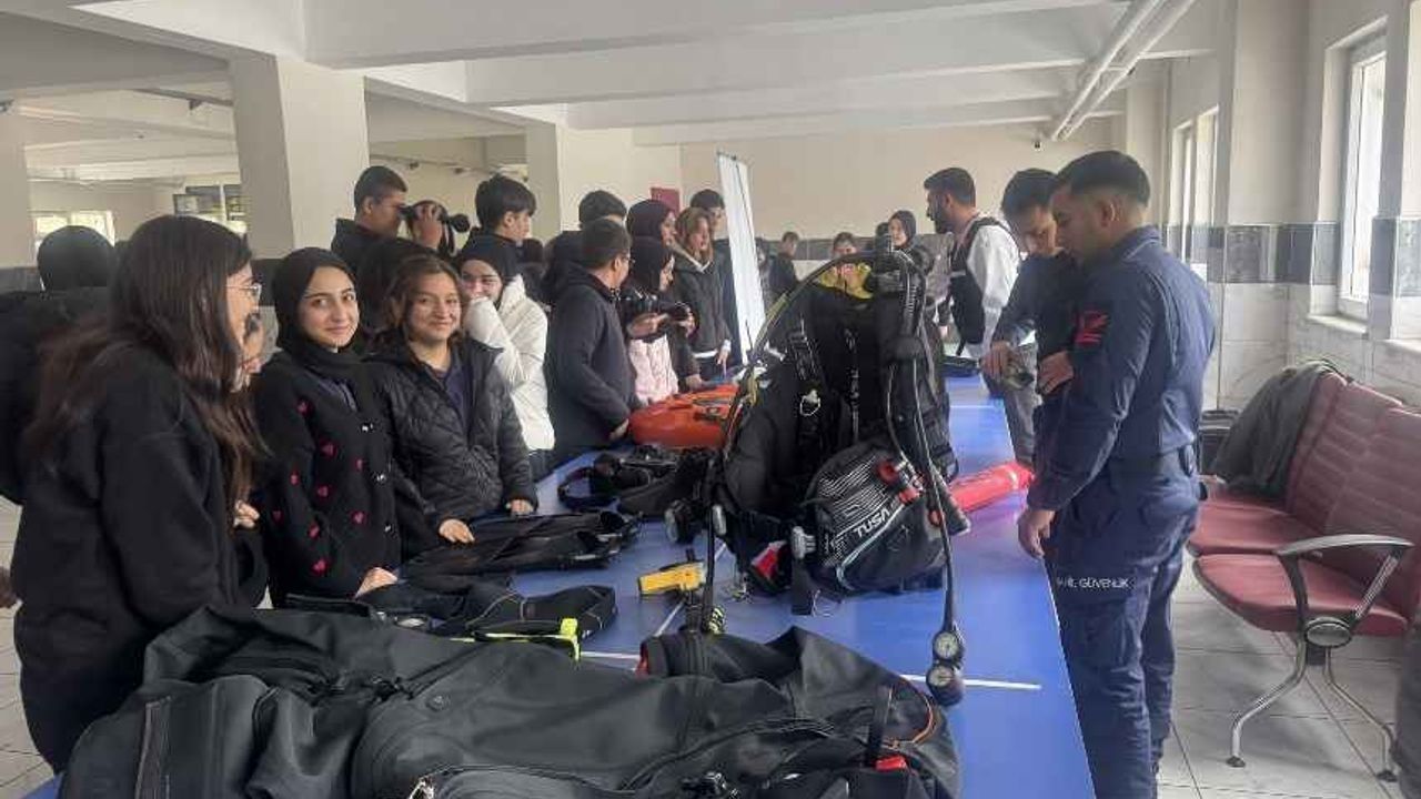 Öğrencilere ayrıca Sahil Güvenlik Komutanlığı personelinin kullandığı dalgıç kıyafetleri ve deniz altı kamera cihazların tanıtımı yapıldı.