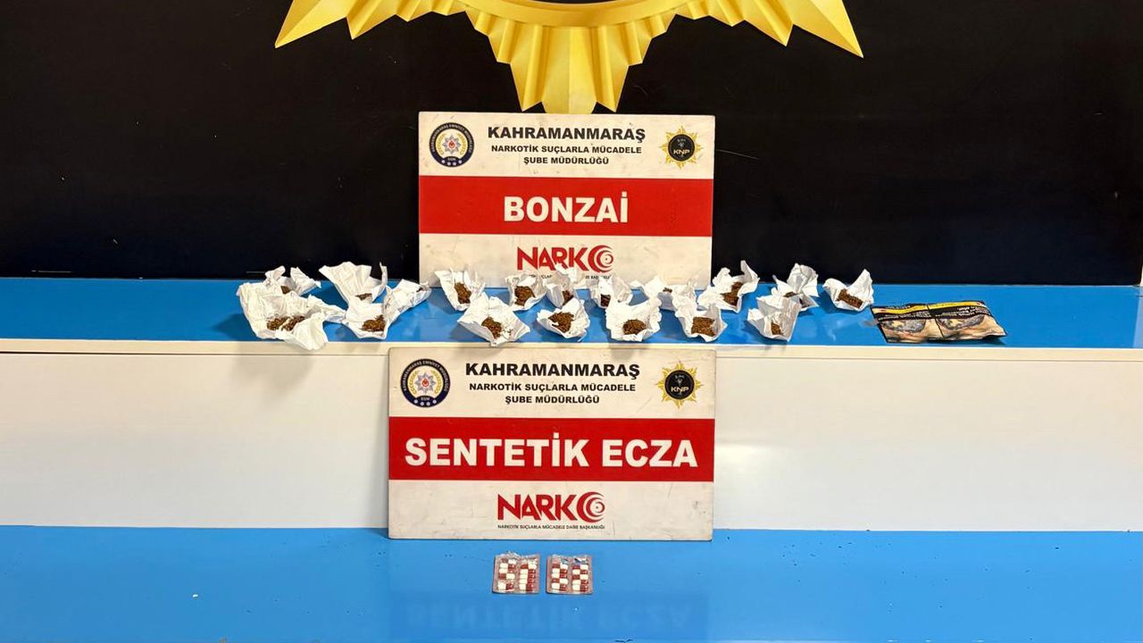 Kahramanmaraş Narkotik Suçlarla Mücadele Şube Müdürlüğü ekiplerince titizlikle yapılan iki ayrı çalışmada toplamda; 45,62 gram sentetik kannabinoid (bonzai), 167,24 gram metamfetamin, 2 bin 958 adet satışı yetkili makamların iznine tabi sentetik hap, 1 adet hassas terazi, 18 bin 200 TL suçtan elde edildiği değerlendirilen para ele geçirildi. Yürütülen çalışmalar kapsamında adli mercilere sevk edilen 2 şüpheli tutuklanırken, 1 şüpheli hakkında adli işlem başlatıldı. Emniyet birimleri, uyuş*turucuyla mücadele kapsamında operasyonların kararlılıkla sürdürüleceğini bildirdi.