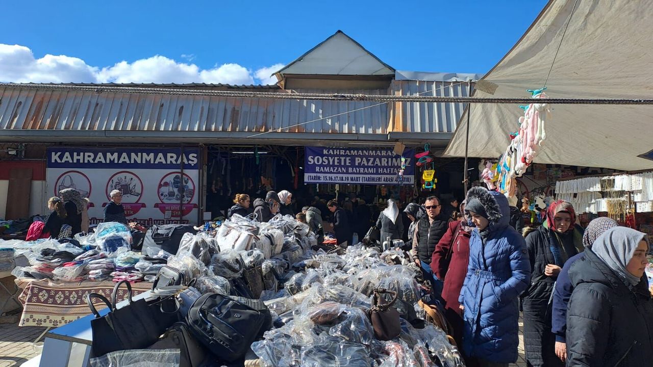 20 Mart Cuma günü idrak edilecek Ramazan Bayramı öncesinde şehirde bayram hazırlıkları hız kazanırken, vatandaşlar kıyafet, ayakkabı ve çeşitli aksesuar ihtiyaçlarını karşılamak için çarşı ve pazarlara yöneliyor. Bu kapsamda Kahramanmaraş’ta giyimden ayakkabıya, çantadan çeşitli aksesuarlara kadar birçok ürünün uygun fiyatlarla satışa sunulduğu Sosyete Pazarı da yoğun ilgi görüyor.