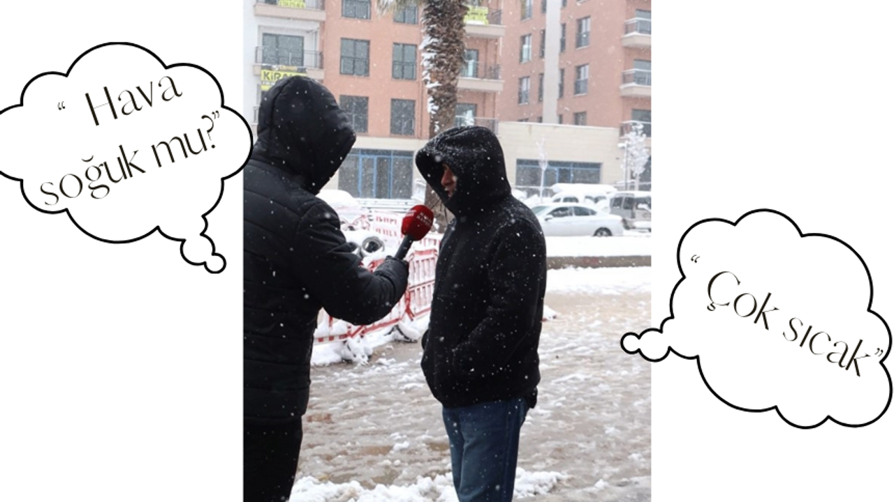 Kahramanmaraş’ta etkili olan kar yağışının ardından mikrofon uzatılan vatandaşların görüşleri renkli görüntülere sahne oldu. Kent genelinde hava sıcaklıklarının düşmesi ve karın etkisini artırmasıyla birlikte yapılan bir sokak röportajı, sosyal medyada gündem oldu. Muhabirin “Hava soğuk mu?” sorusuna bir vatandaşın tereddütsüz şekilde “Çok sıcak” yanıtını vermesi, izleyenleri hem şaşırttı hem de güldürdü. Kısa sürede sosyal medyada paylaşılan video, binlerce kişi tarafından izlenirken çok sayıda yorum ve beğeni aldı. Kimi kullanıcılar vatandaşın esprili yaklaşımını överken, kimileri de Kahramanmaraşlıların soğuk havaya alışkın olduğunu dile getirdi. Video, kar yağışının getirdiği zorlu hava şartlarına rağmen yüzlerde tebessüm oluşturdu. Kar yağışı sonrası kentte hem soğuk hava hem de sıcak gülümsemeler aynı anda yaşandı.