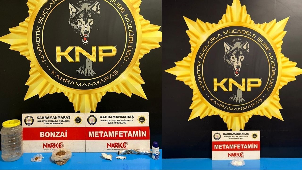 Kahramanmaraş Emniyet Müdürlüğü Narkotik Suçlarla Mücadele Şube Müdürlüğü ekipleri tarafından 7 ve 8 Mart 2026 tarihlerinde gerçekleştirilen çalışmalarda çeşitli miktarlarda yasaklı madde ele geçirildi, 1 kişi tutuklandı. 7 Mart 2026 tarihinde yapılan operasyonda 24,17 gram metamfetamin maddesi ele geçirildi. 8 Mart 2026 tarihinde gerçekleştirilen çalışmada ise 63,71 gram sentetik kannabinoid (bonzai), 10,28 gram metamfetamin maddesi, 1 adet folyo rulosu ve 1 adet aseton bulundu.
