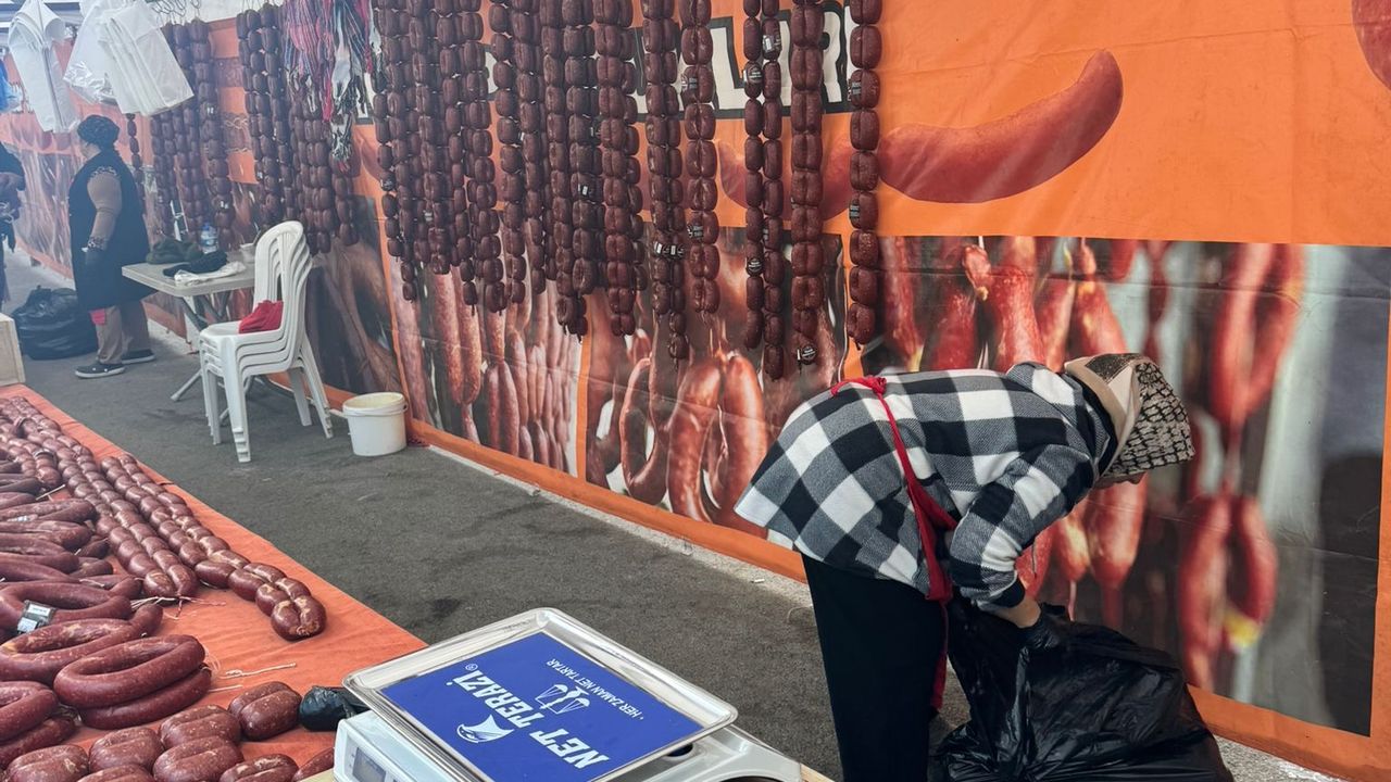 Ekipler, son denetim sırasında Yöresel Çarşı olarak kurulan bir pazarda sucuk satışı gerçekleştiren firmayı kapsamlı incelemeye aldı.