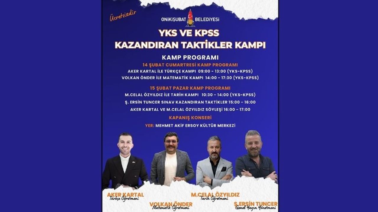 Ücretsiz olarak düzenlenecek olan program, Mehmet Akif Ersoy Kültür Merkezi’nde gerçekleştirilecek ve hem YKS hem de KPSS adaylarına hitap edecek şekilde planlandı.