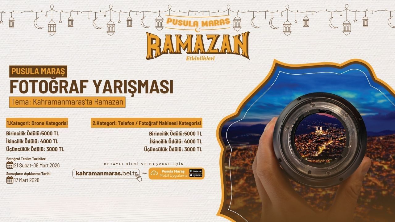 Yarışmaya katılmak isteyen gençler, 9 Mart Pazartesi gününe kadar başvurularını tamamlayabilecek. Başvuruların sona ermesinin ardından yapılacak değerlendirme süreci neticesinde sonuçlar 17 Mart Salı günü kamuoyuyla paylaşılacak. Katılım şartları ve başvuru formuna https://kahramanmaras.bel.tr/duyuru/2026/02/21/pusula-maras-fotograf-yarismasi-basvuru-formu internet adresi üzerinden ulaşılabiliyor. Büyükşehir Belediyesinden yapılan açıklamada, 18 – 35 yaş aralığındaki tüm Kahramanmaraşlı gençler yarışmaya davet edilerek, Ramazan’ın şehirdeki en özel anlarını ölümsüzleştirmeleri çağrısında bulunuldu.