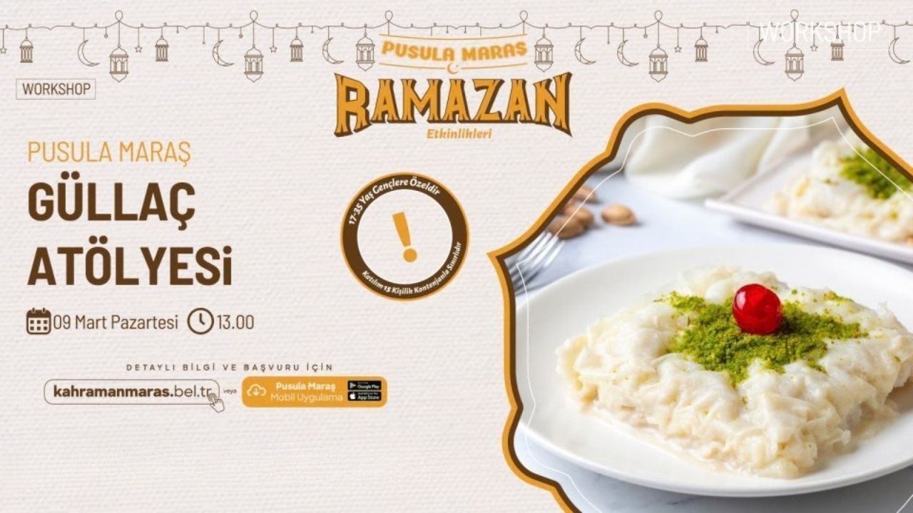 Kahramanmaraş Büyükşehir Belediyesinin gençlik markası Pusula Maraş, Ramazan ayının manevi atmosferini gençlerle buluşturacak yeni bir etkinliğe daha imza atıyor. Ramazan’a özel olarak geleneksel lezzetlerin yaşatılmasına yönelik atölye çalışmaları kapsamında bu kez de “Güllaç Yapım Atölyesi” gerçekleştiriyor. Gençlerin hem kültürel mirasla tanışmasını hem de sosyal etkinlikler aracılığıyla bir araya gelmesini amaçlayan Pusula Maraş, “Güllaç Yapım Atölyesi” ile katılımcılara keyifli ve öğretici bir deneyim sunacak. Ramazan sofralarının vazgeçilmez tatlılarından biri olan güllacın yapım aşamalarının uygulamalı olarak anlatılacağı etkinlik 9 Mart Pazartesi günü saat 13.00’da KAMEK binasında gerçekleştirilecek. Etkinlikte yaklaşık 600 yıllık bir geçmişe sahip güllaç tatlısının doğru yapım teknikleri hakkında bilgiler verilecek.